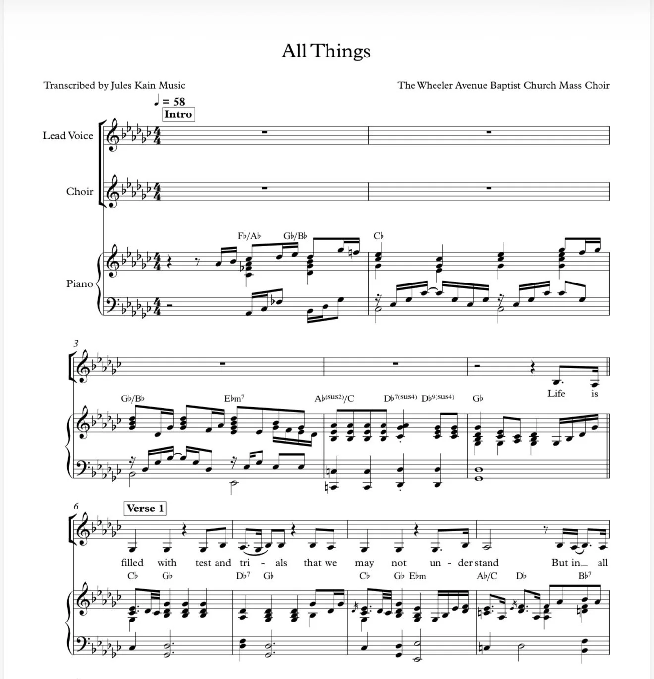 Gospel Sheet Music for Piano › All Things - The Wheeler Avenue Baptist Church Mass Choir - Sheet Music Image 1 of 2 Image 2 of 2 All Things - The Wheeler Avenue Baptist Church Mass Choir - Sheet Music $10.00 Get notified by email when this product is in stock. Sign up to receive news and updates. Add To Cart Added! All Things - SAT - The Wheeler Avenue Baptist Church Mass Choir $20.00 Add To Cart Reviews Reviewer Name Review Date Star Rating Description Posted on Etsy Product Show More