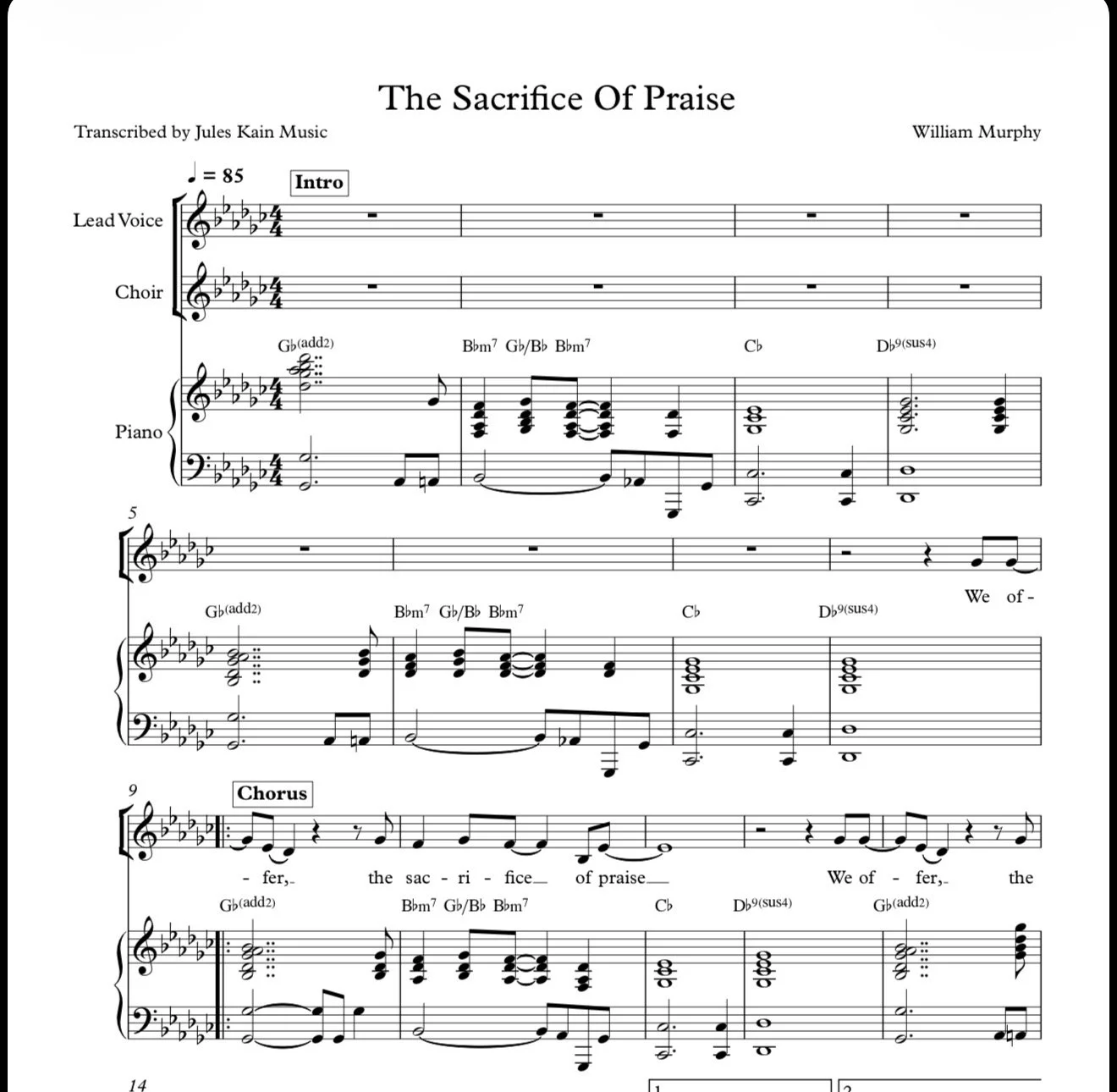 Gospel Sheet Music for Piano › William Murphy - The Sacrifice Of Praise - Sheet Music Image 1 of 2 Image 2 of 2 William Murphy - The Sacrifice Of Praise - Sheet Music $10.00 Get notified by email when this product is in stock. Sign up to receive news and updates. Add To Cart Added! The Sacrifice Of Praise - William Murphy- Choir Parts $20.00 Add To Cart Reviews Reviewer Name Review Date Star Rating Description Posted on Etsy Product Show More You Might Also Like Quick View Hezekiah Walker - God Favored Me - Sheet Music - Chords $10.00 Quick View Hezekiah Walker - Power Belongs To God - Sheet Music $10.00 Quick View Hezekiah Walker - Wonderful Is Your Name - Sheet Music $10.00 Quick View Hezekiah Walker - Grateful - Piano & Choir Sheet Music $10.00 Quick View Hezekiah Walker - Faithful Is Our God - Sheet Music $10.00
